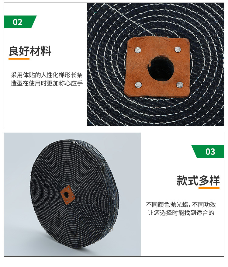 1)非縫合式整布輪。多用細軟棉布制成,宜拋光形狀復雜工件,或用于小型工件的精拋光。