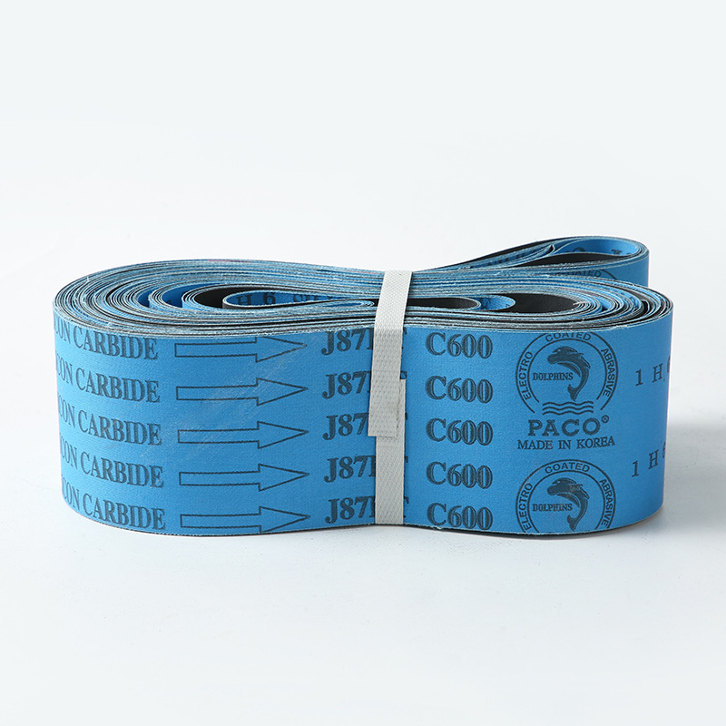 您當前的位置:首頁 / 產(chǎn)品中心 / 砂帶系列 / 藍色J87BT海豚砂帶 碳化硅磨料砂卷紙手撕砂帶砂紙打磨