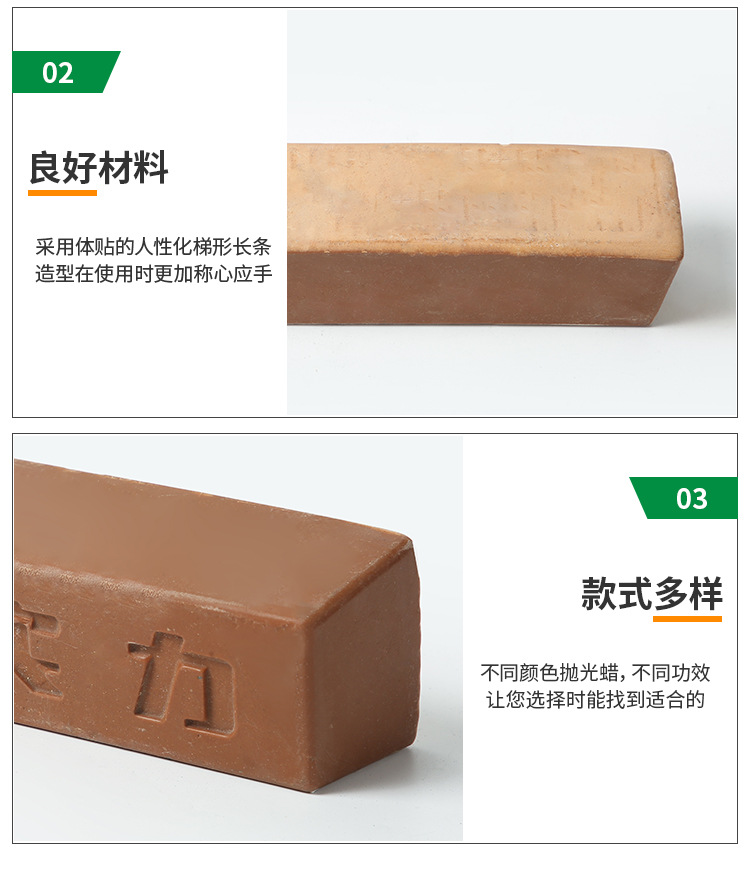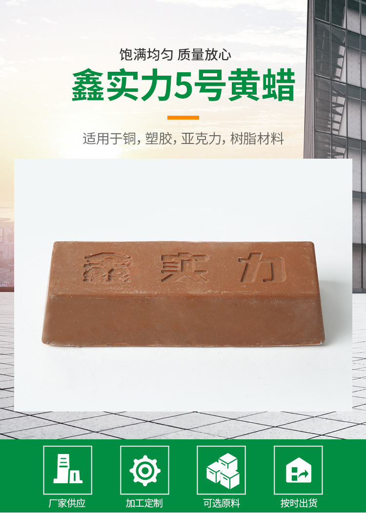 廠家供應(yīng)鑫實(shí)力5號(hào)黃蠟 不銹鋼金屬拋光黃蠟塑膠拋光蠟由溫州華銘拋光研磨材料有限提供,本公司提供的拋光臘用料厚實(shí)夠用,選用良好材料生產(chǎn),外觀美觀實(shí)用,使用時(shí)間長(zhǎng),可滿足客戶對(duì)不同產(chǎn)品的拋光需求,豐富的生產(chǎn)經(jīng)驗(yàn),滿足客戶對(duì)不同 產(chǎn)品的拋光需求。咨詢電話:13075703790