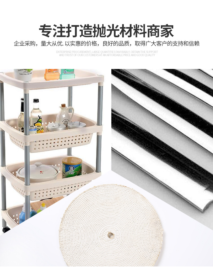 麻轆:可分為油麻轆和布麻轆。麻轆采用優(yōu)良劍麻為原材料,經(jīng)再三深加工布成為一種堅(jiān)硬的拋光材料,油麻轆主要用于不銹鋼制品自動(dòng)拋光生線,布麻轆通常用于拋金屬制品,種類齊全,規(guī)格有直徑50mm——500mm不等